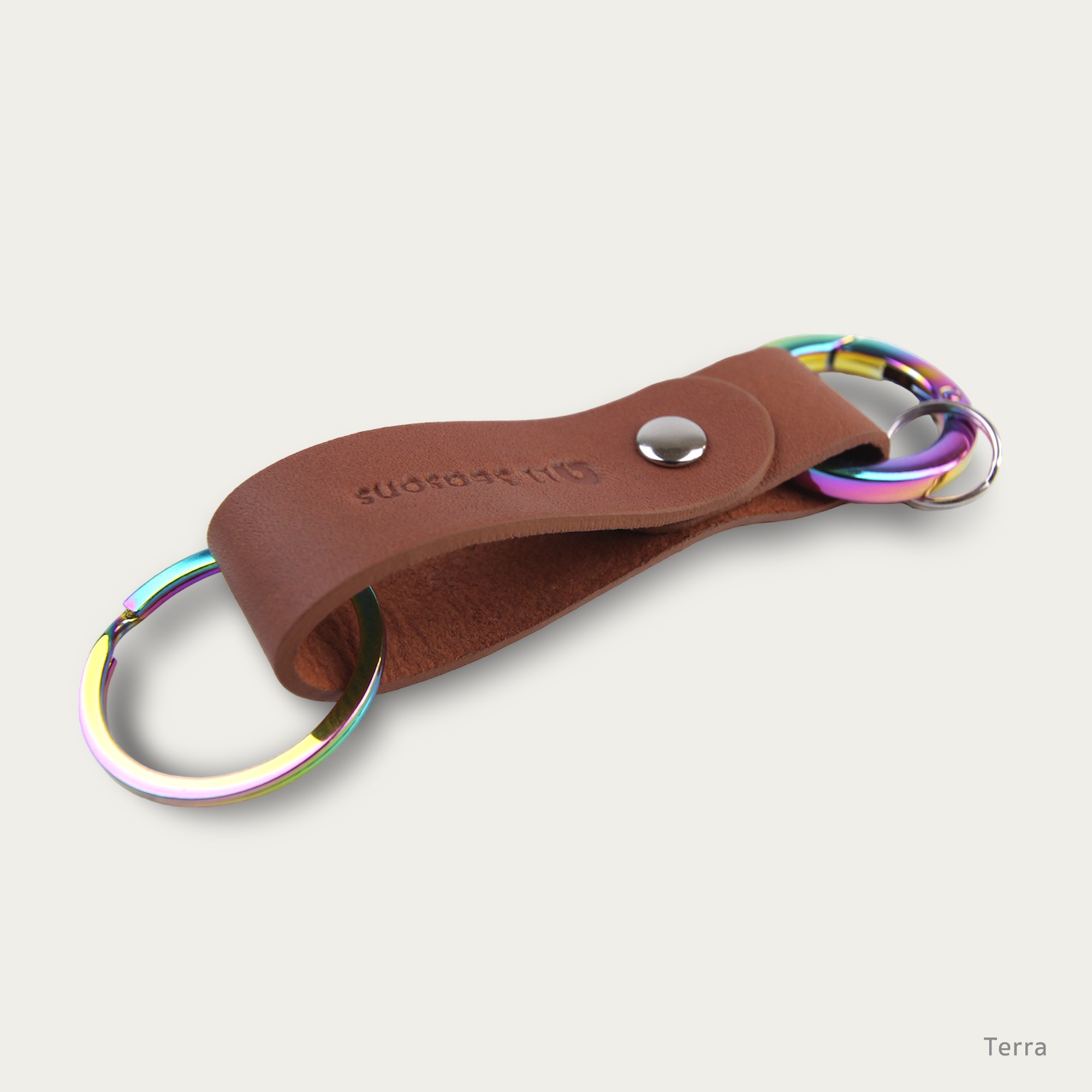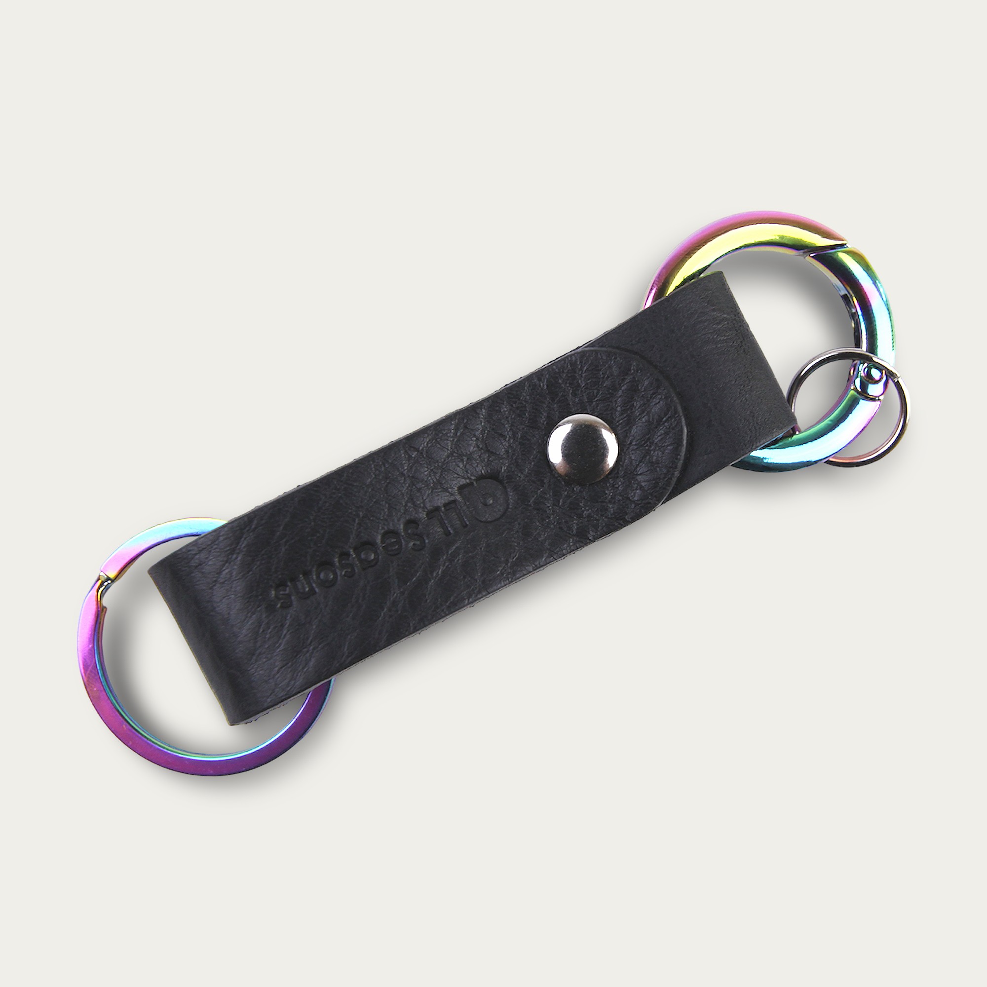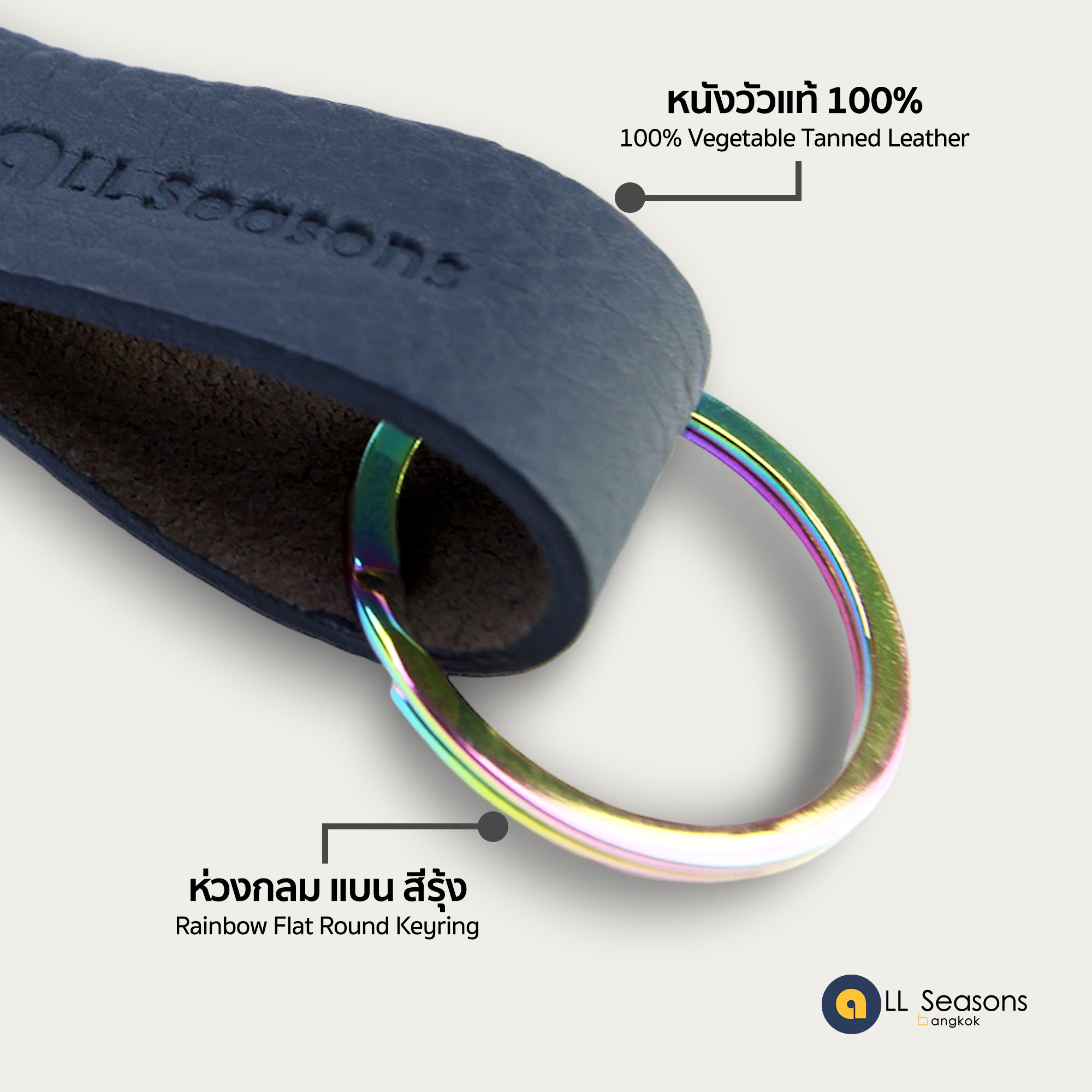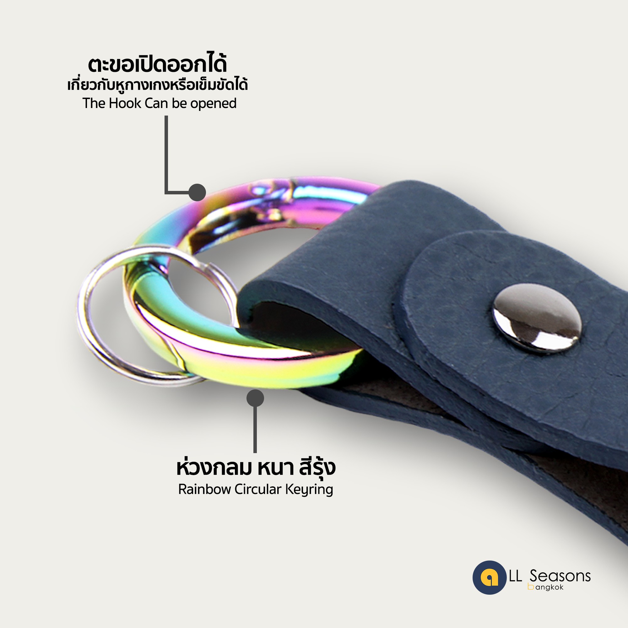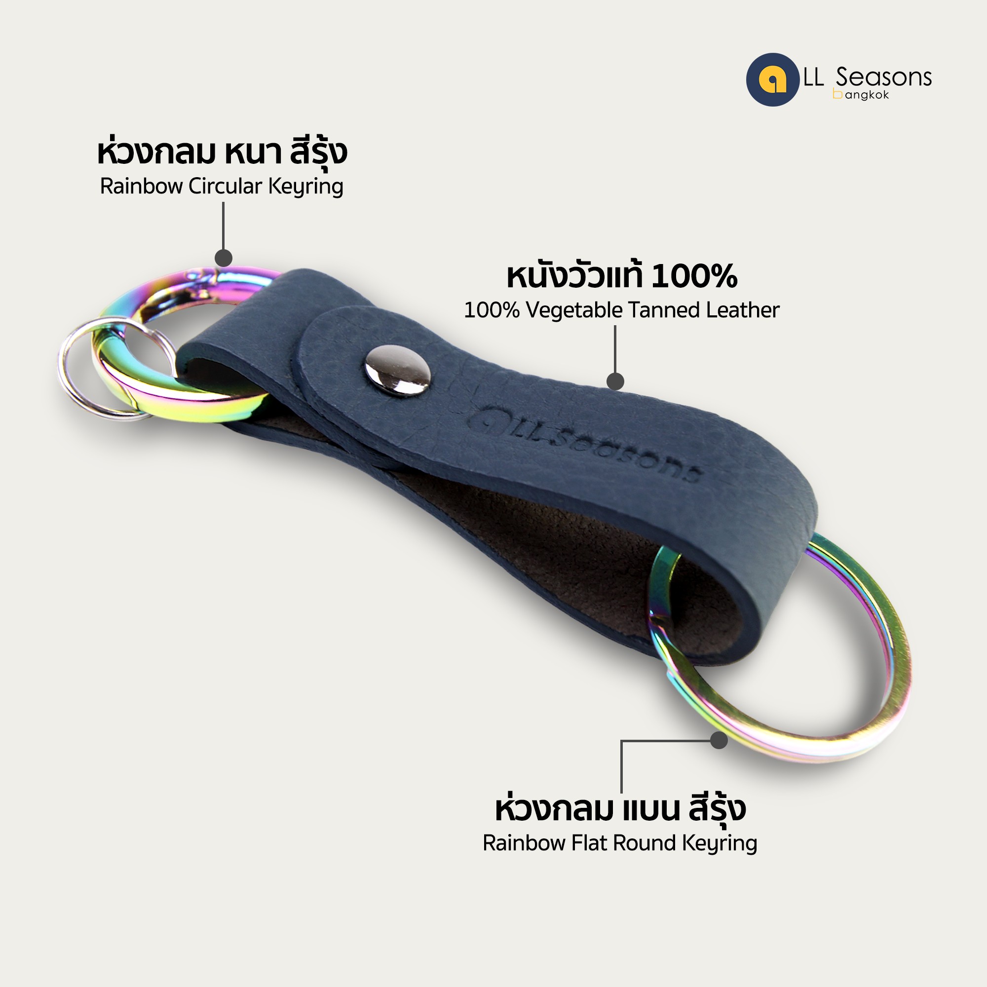 พวงกุญแจหนังแท้ ห่วงกลมโลหะ 2 ห่วง สีรุ้ง