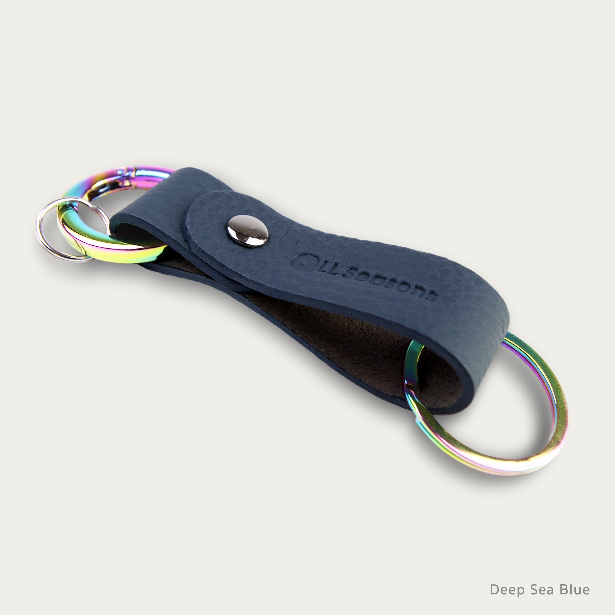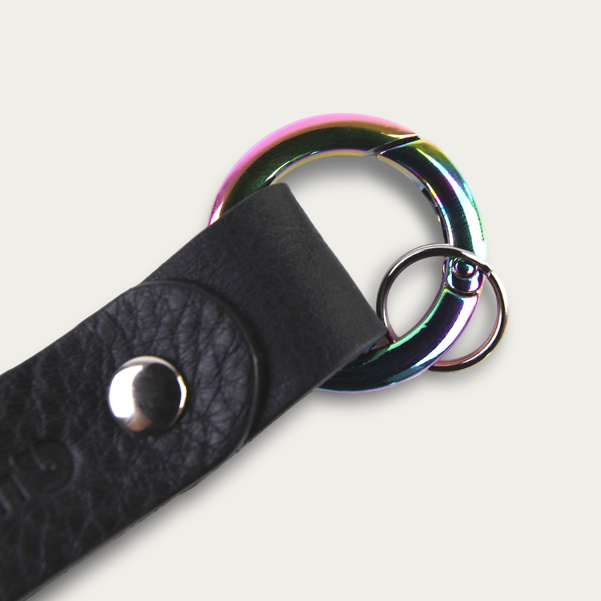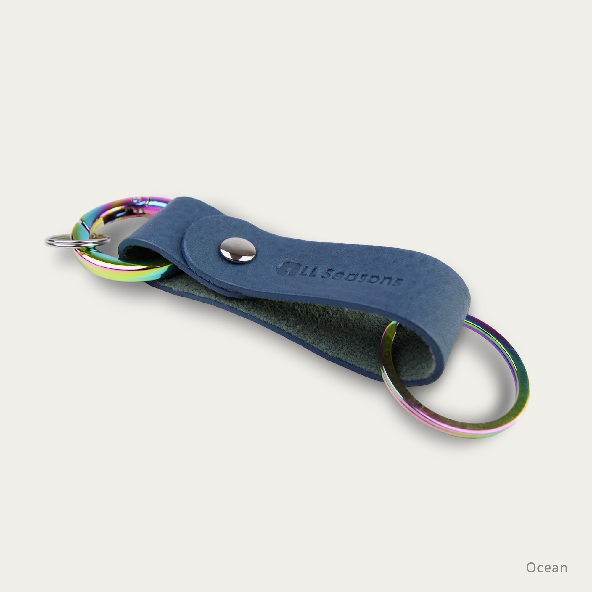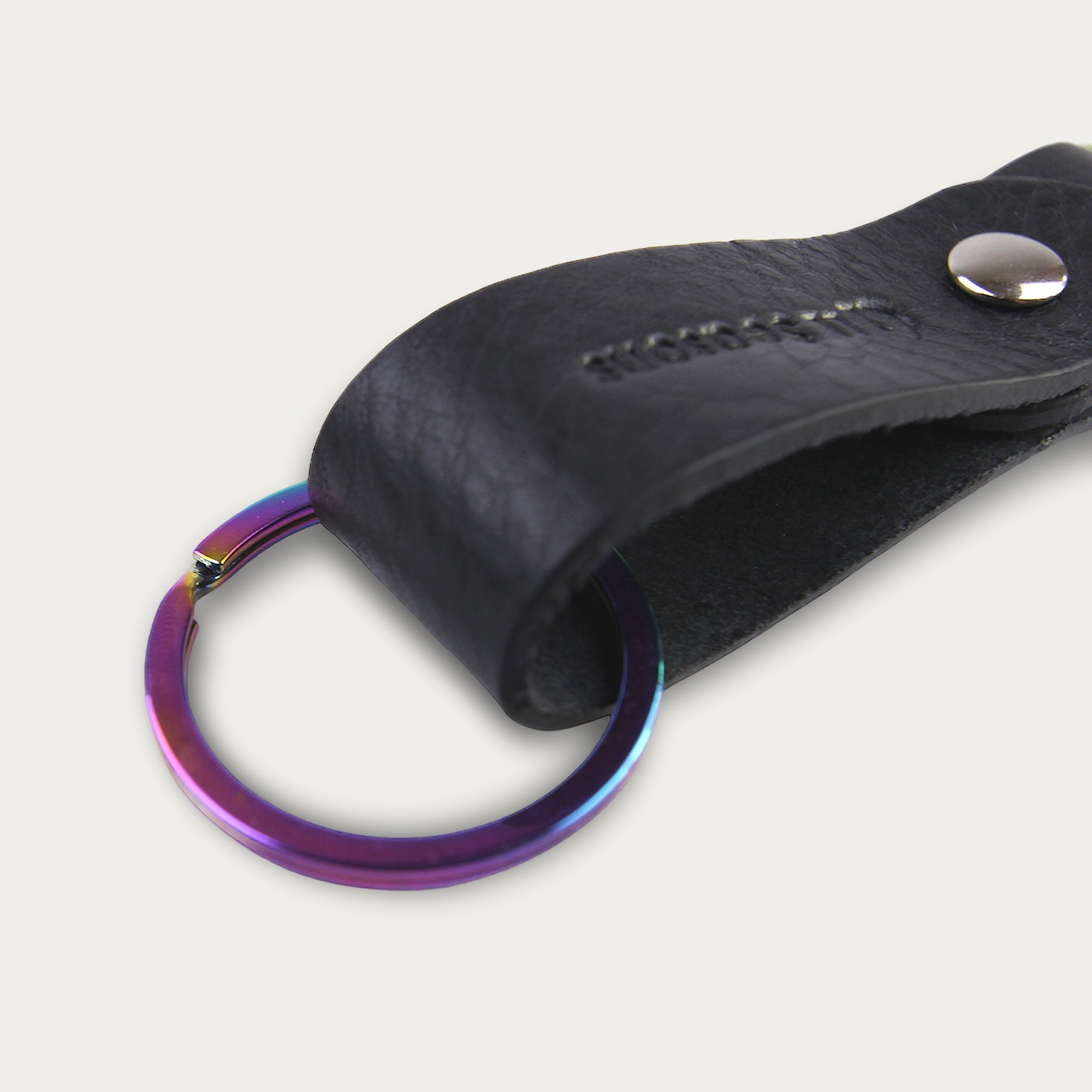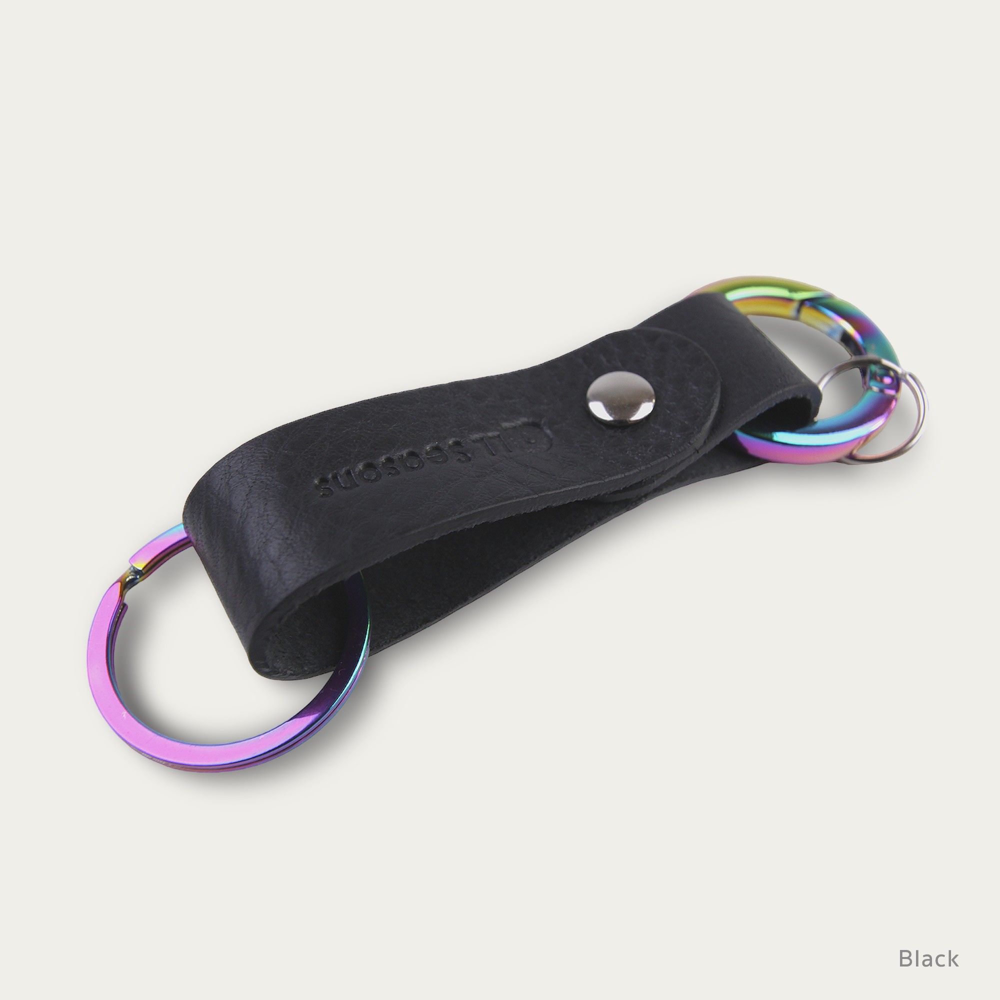 พวงกุญแจหนังแท้ ห่วงกลมโลหะ 2 ห่วง สีรุ้ง